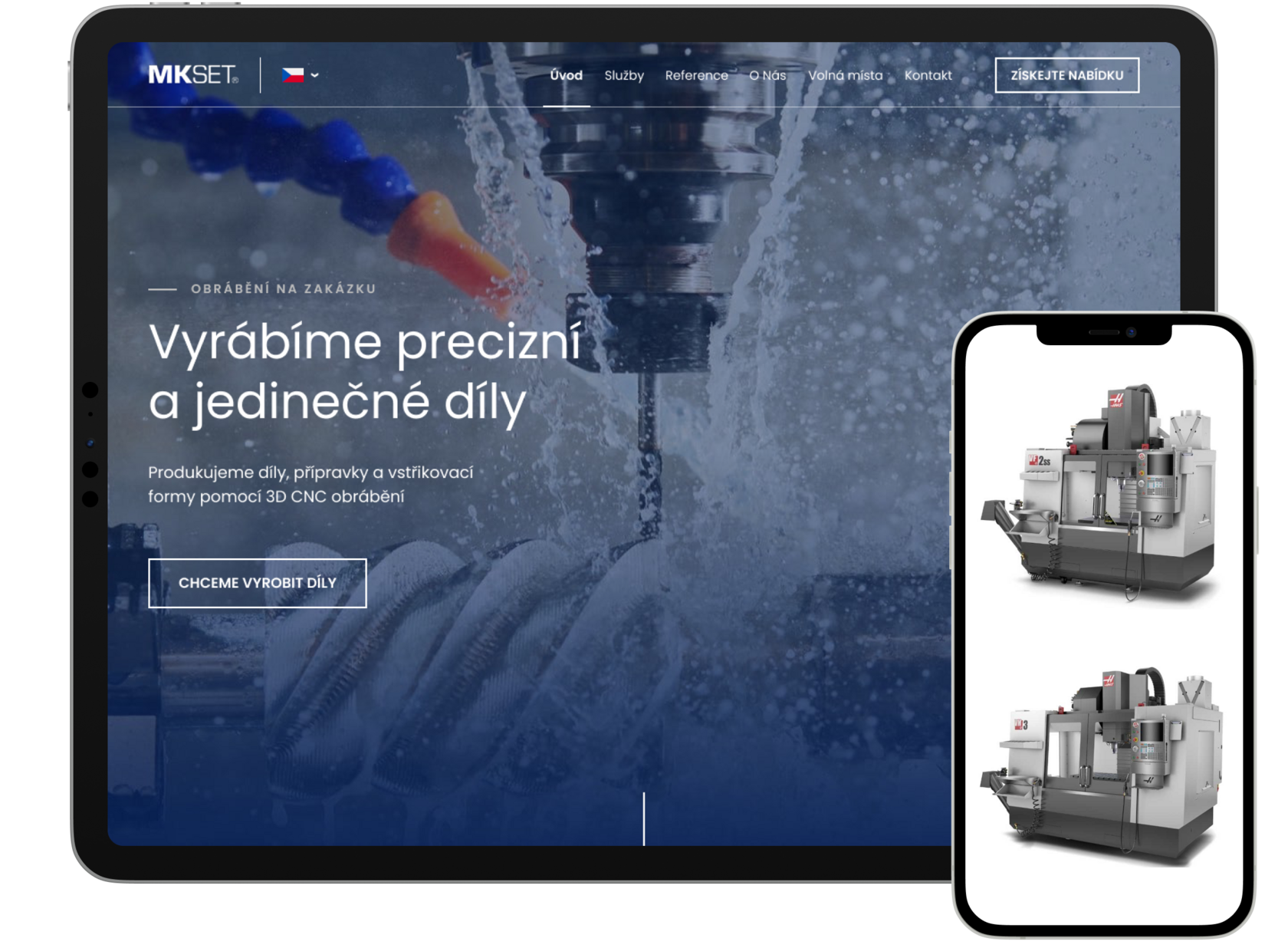 Design jsme vystavěli na kontrastu preciznosti a jednoduchosti, stejně jako funguje samotná výroba v MKSet. Výsledkem je moderní, přehledný a profesionální web, který ukazuje, že i technický obor může působit srozumitelně a přitažlivě.Web, který klientům pomáhá rychleji pochopit, co MKSet nabízí — a proč právě oni.